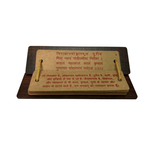 Incorporate the powerful vibrations of Mahadev into your daily life with our Shree Shiv Rudrashtakam Wooden Wall Hanging. The Rudrashtakam is a famous hymn composed by Tulsidas in honor of Lord Shiva, known for its ability to bring peace, prosperity, and the removal of suffering. This handcrafted wooden piece serves as more than just a decoration; it is a sacred focal point for meditation and daily devotion.