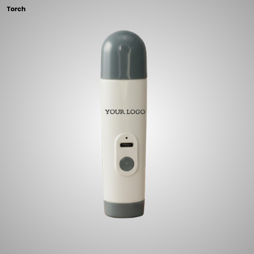 Multi-purpose rechargeable torch with built-in body massager, featuring LED torch light, vibration massage function, and custom logo branding. Ideal for home use, travel, emergency, and corporate gifting.
